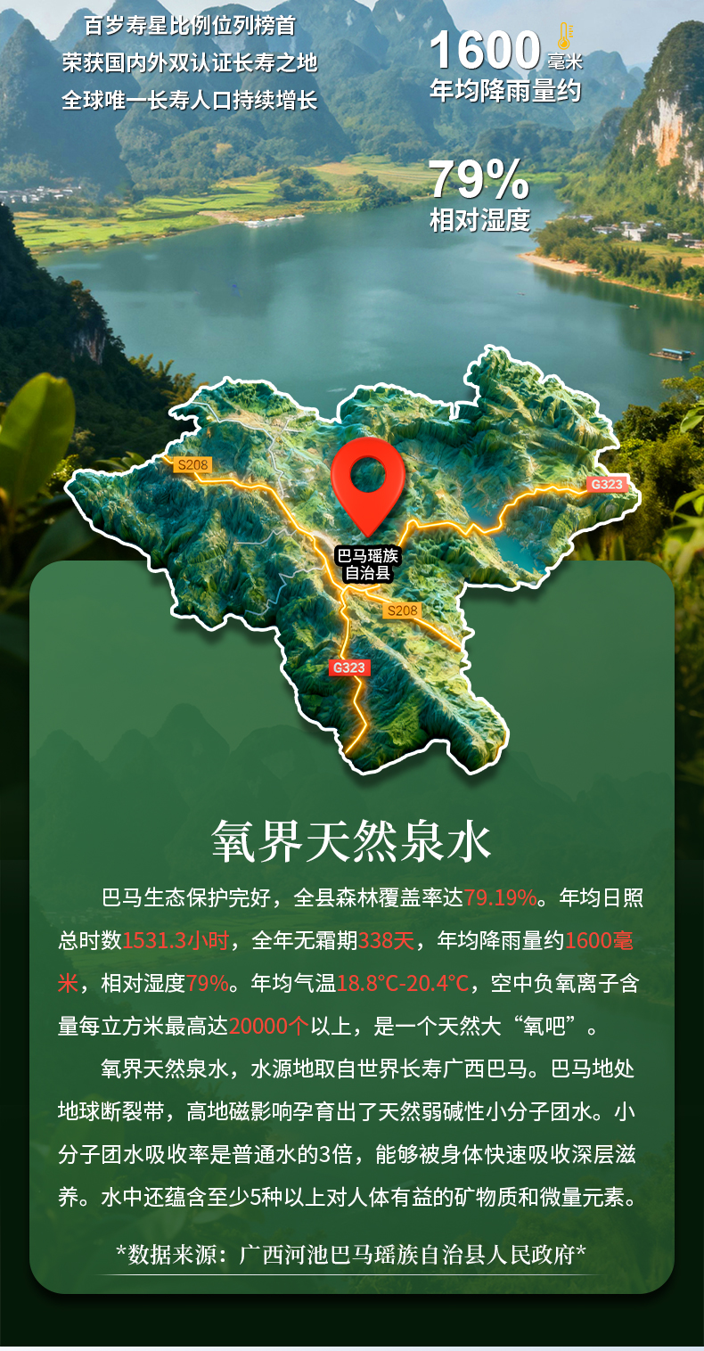 水源地:巴马瑶族自治县巴马镇巴马村