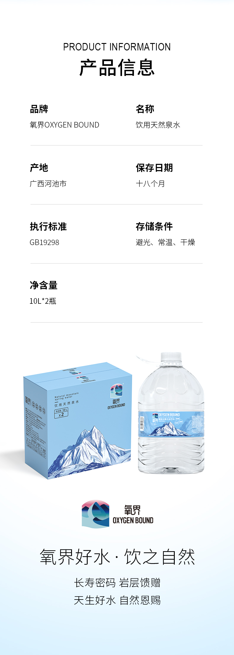 氧界天然山泉水10L